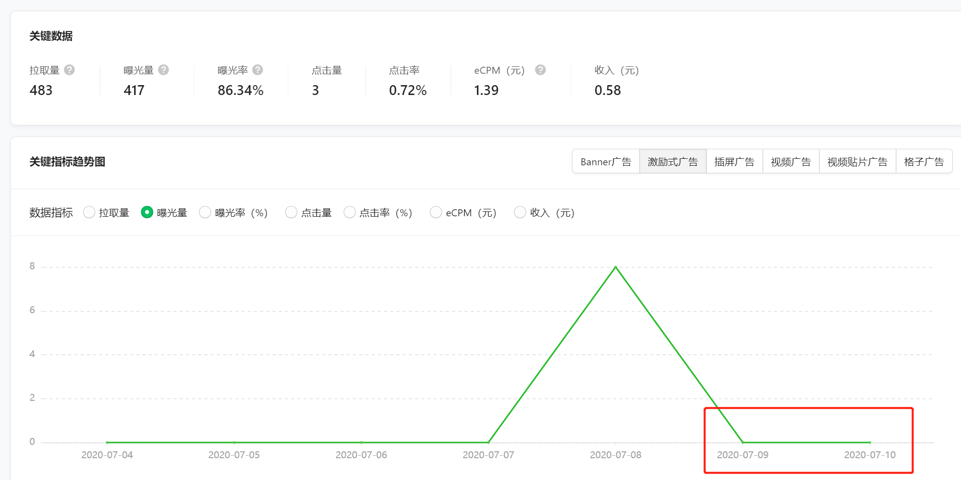 7月8号 广告就审核通过了,9号、10号 数据都是 0