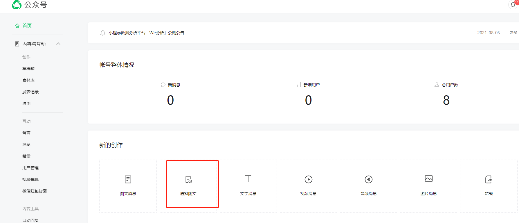 以前直接在图文里面修改就可以了,现在是修改完后,发布,发布完后,在去自定义菜单里替换刚发布的内容,工作量一下变大了,一点也不好用,还有就是关键词自动回复,以前直接修改就默认修改了,现在修改完后发布,然后再去关键词那替换刚刚发布的,关键词那我那基本每周都有十几项变动,以前直接修改就自动同步了,现在还的修改后同步,完全不好用。能不能弄个弄成旧版本的,或者弄个旧版本通道,自己恢复到原来的图文素材。希望永久链接可以直接在发布消息上面直接增加修改内容。这样就方便多了,要不同意标题我的发布好几个,真的有时候批量弄,弄的自己都不知道哪个是哪个了,我这关键词用的比较多。希望官方能考虑下永久链接的文章内容的增加和修改。