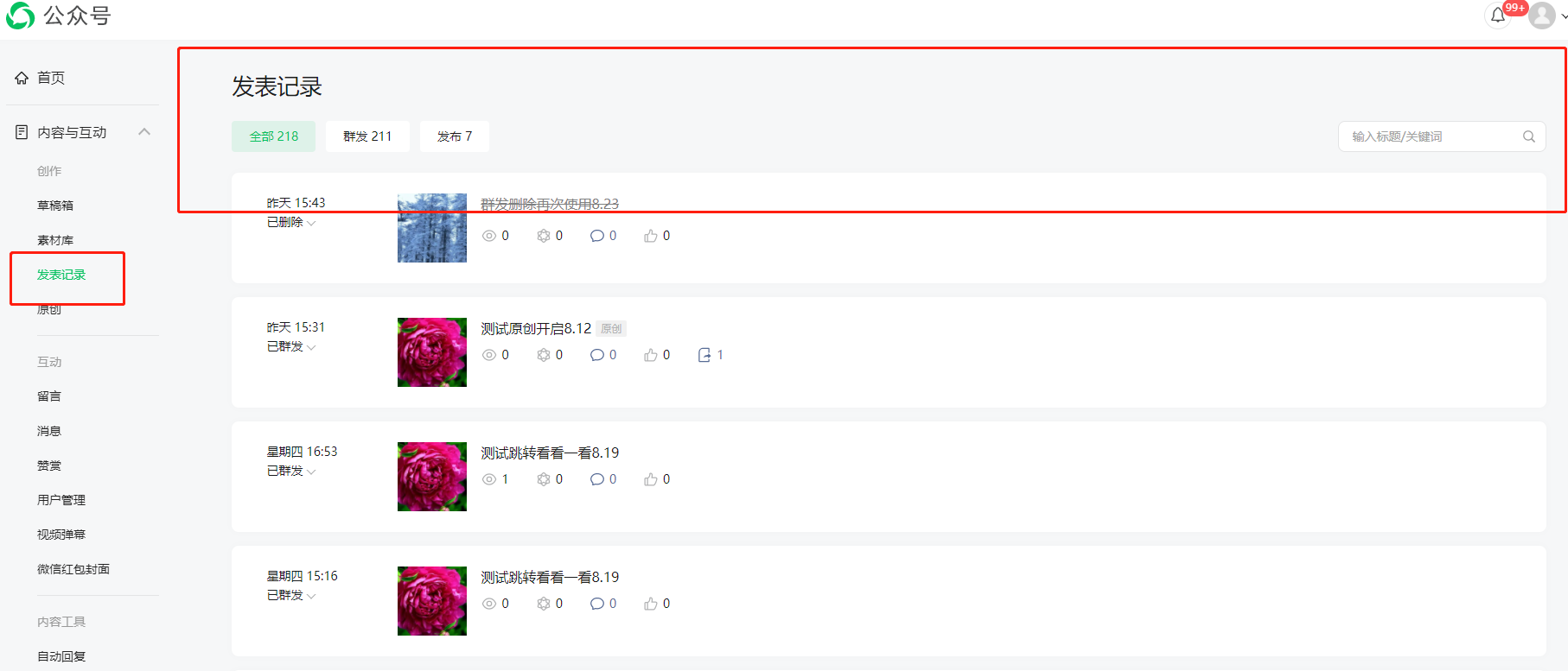 已发布的文章可以在发表记录中查找
