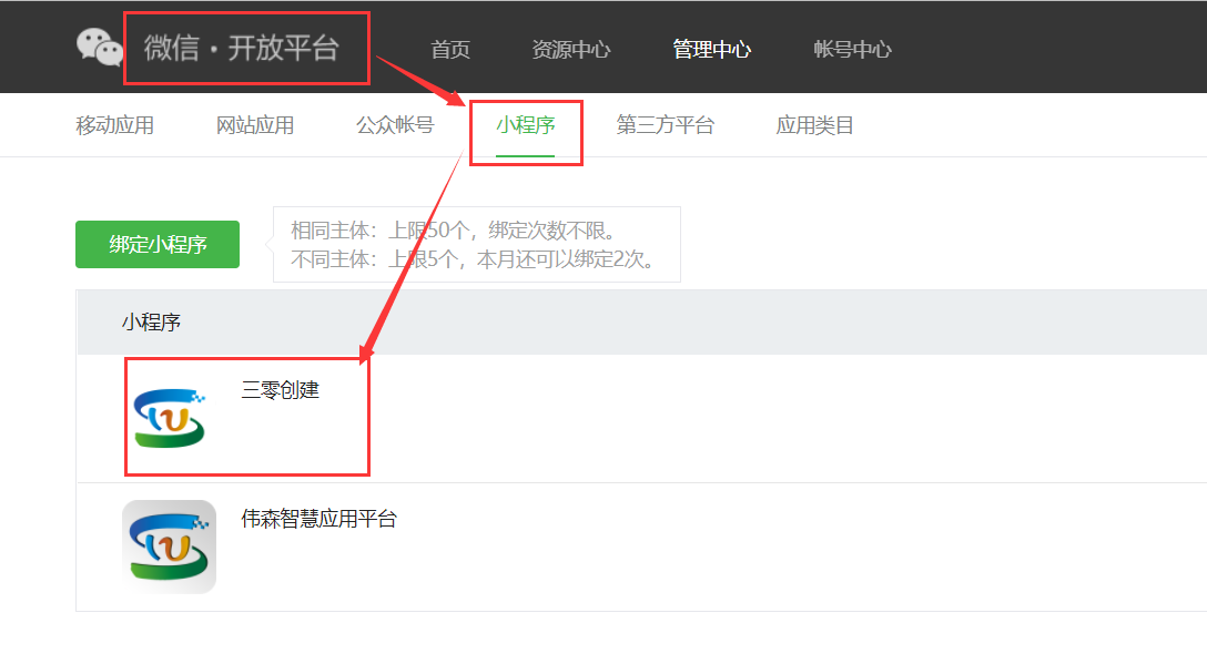2、小程序三零创建的appid为:appid:wx9fd855a5c3ab9e88
