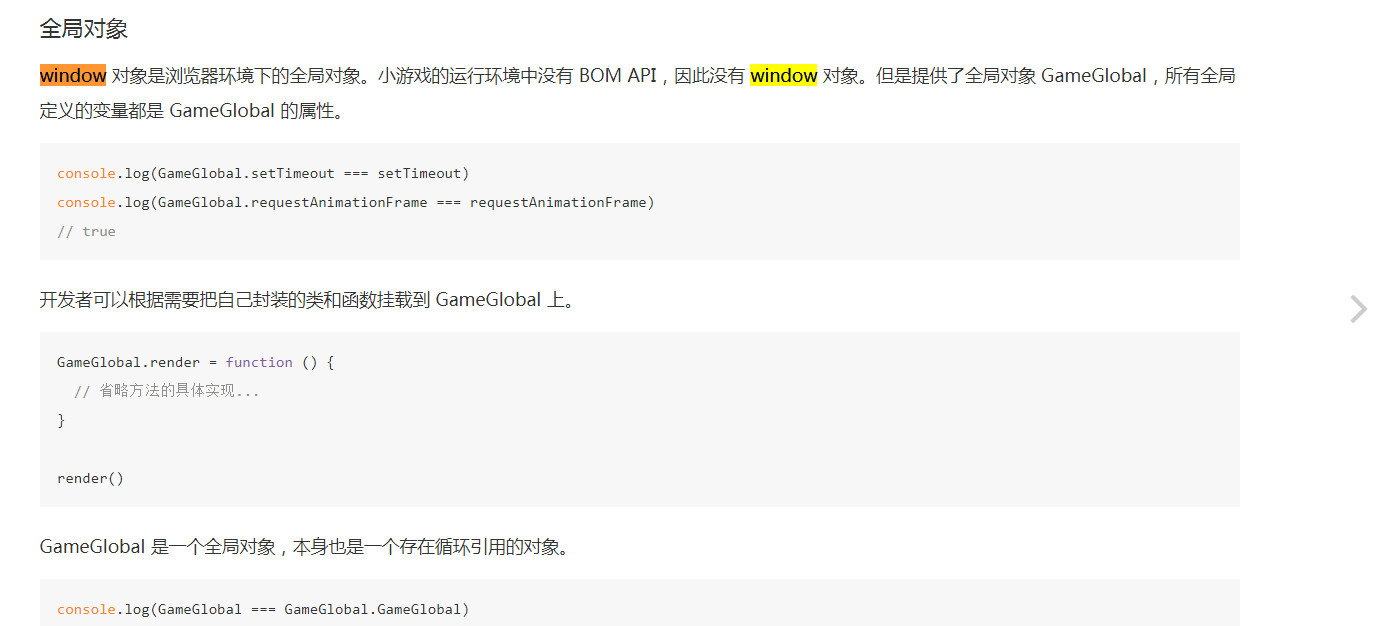 window对象本身在小游戏里面是没有的,可以阅读相关文档: https://developers.weixin.qq.com/minigame/dev/index.html?t=19011811