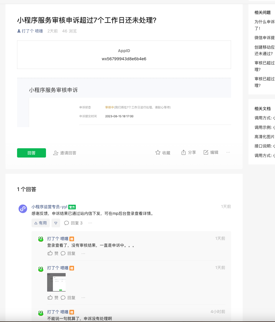 申诉规则与处理标准: 小程序/运营/运营规范/九、交易类小程序运营规范/3. 交易争议管理规范/3.5 交易投诉举证标准/申诉期处理规则