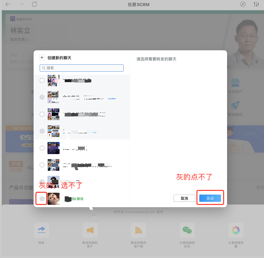 我也有遇到这个问题。用这个接口,Mac端拉起转的窗口,可以选企业内部联系人的会话,但选不了外部联系人的会话去分享: