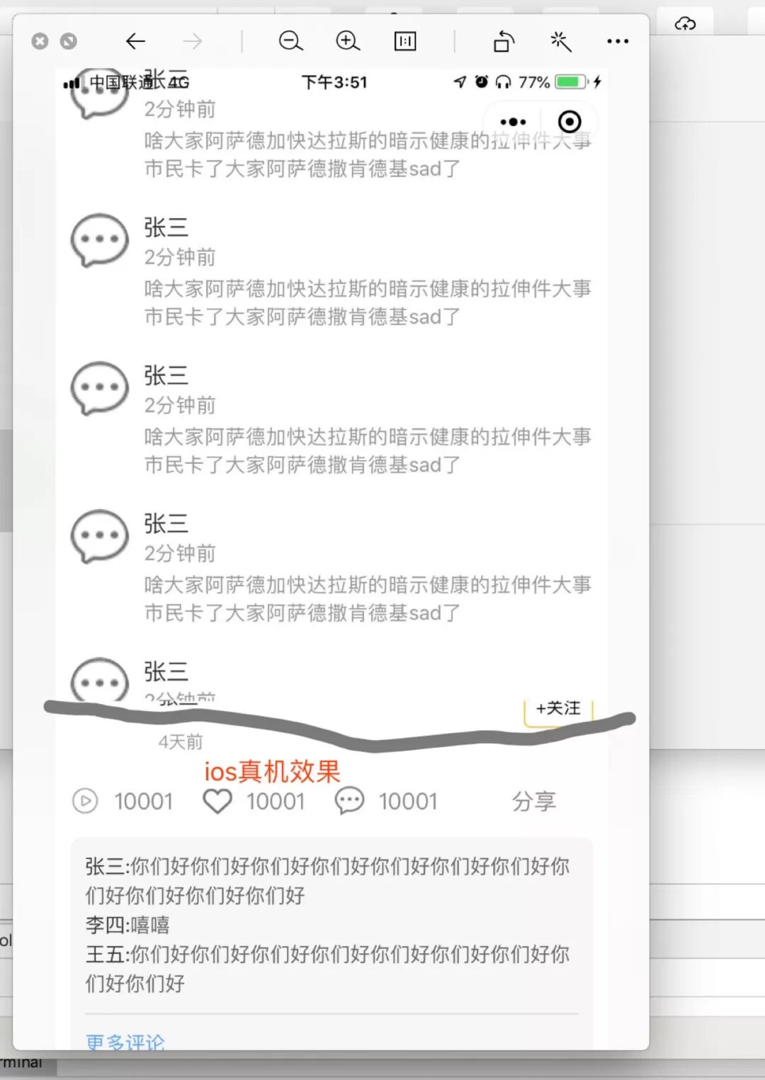 在ios下不滑动页面的时候 也是没有问题的 但是滑动之后 再让那个cover-view显示出来 就出现了下面的问题