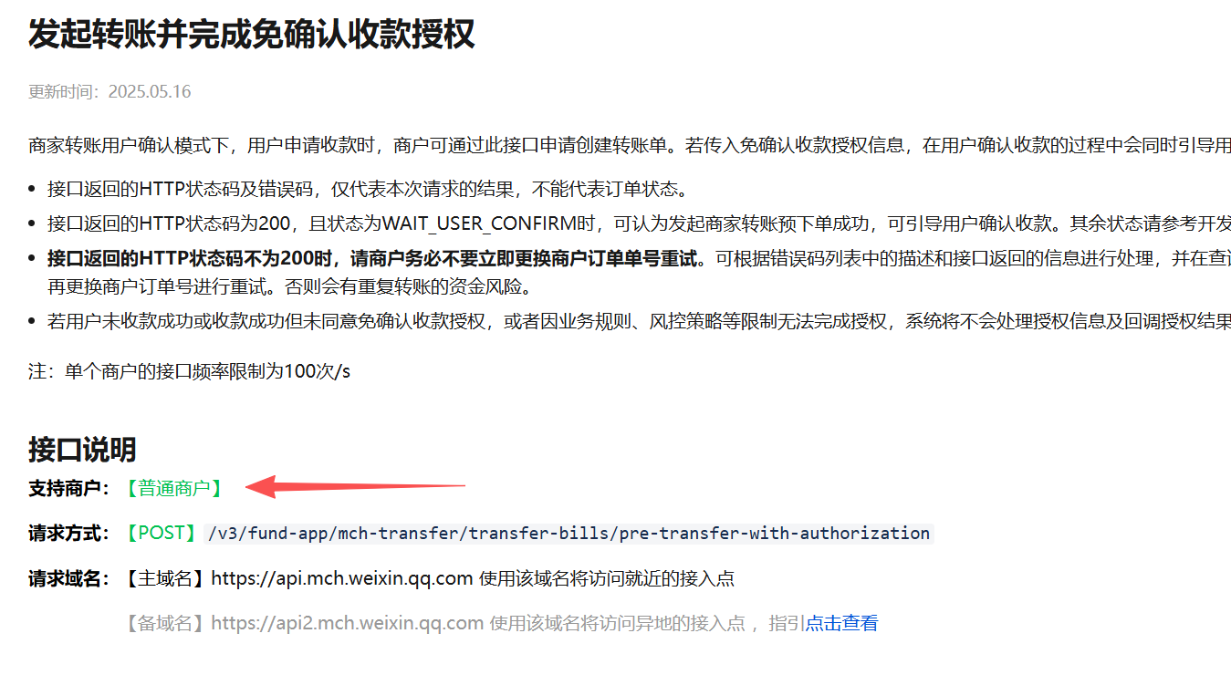 发起转账并完成免确认收款授权(/v3/fund-app/mch-transfer/transfer-bills/pre-transfer-with-authorization)这个接口调用后提示