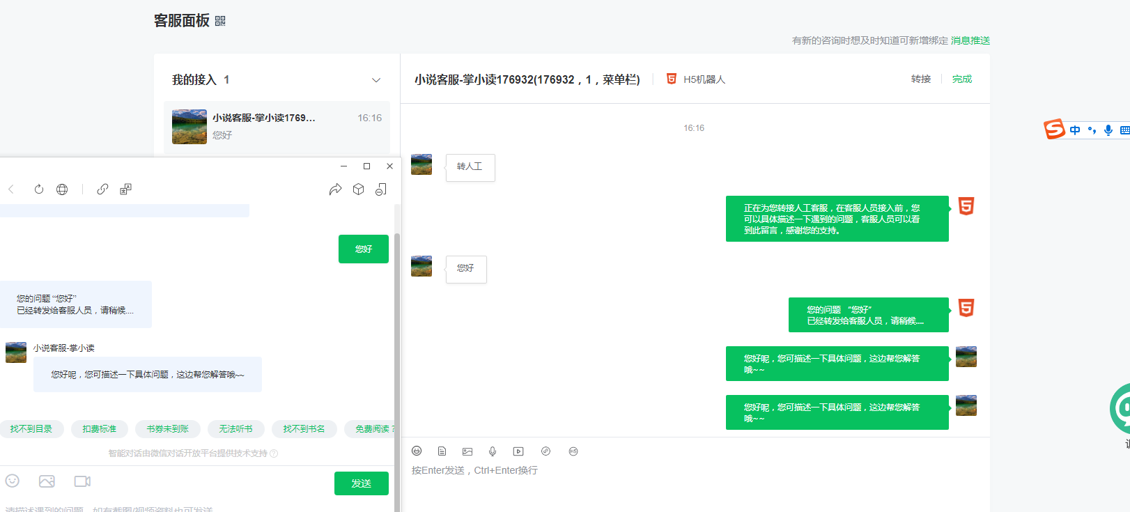 不管回复几次用户消息,点击完成后,或者刷新一下,回复用户的消息就会不见,麻烦尽快排查一下