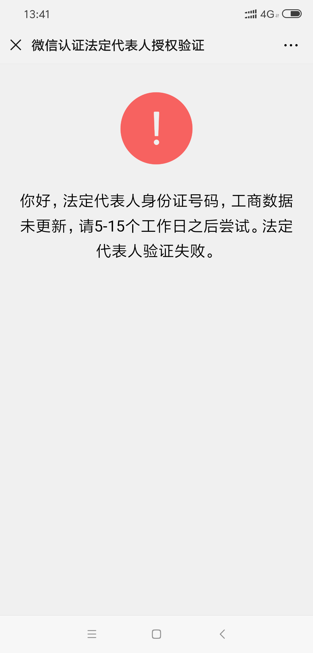 注册时填写的主体名称与营业执照上的主体名称不一致,故法人验证失败。请严格按照营业执照的主体名称填写。