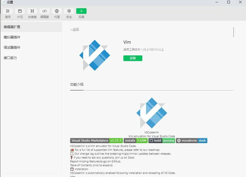 设置-拓展-编辑器拓展-vim 是否被打开了
