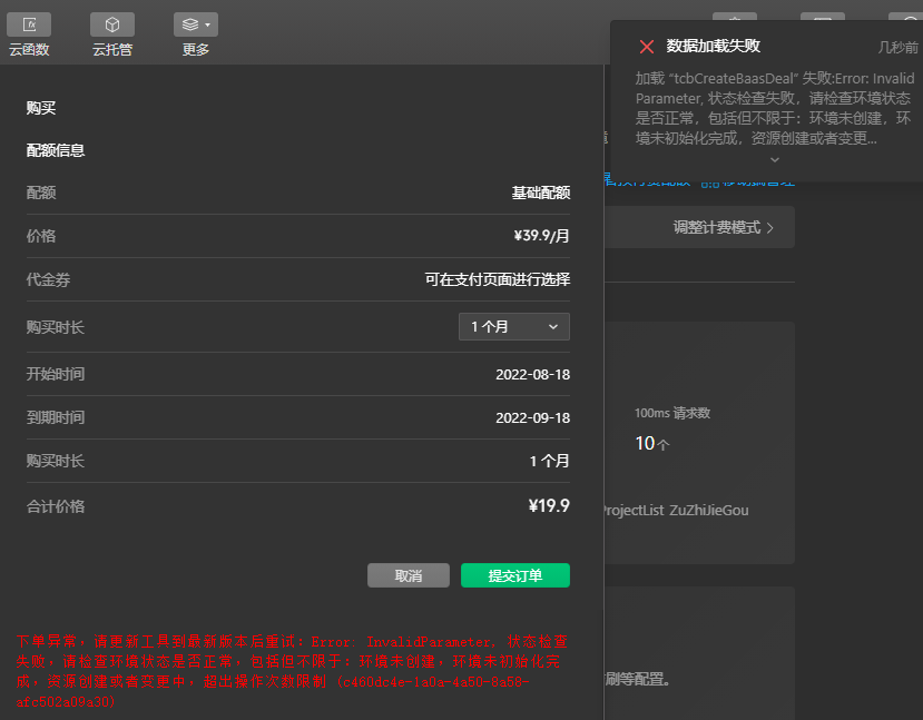 如遇操作问题,可提供环境id及右侧报错中的requestid