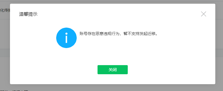 公众号迁移时出现提示说:公众号存在恶意违规行为,暂不支持迁移要多久才能解除,有什么条件?