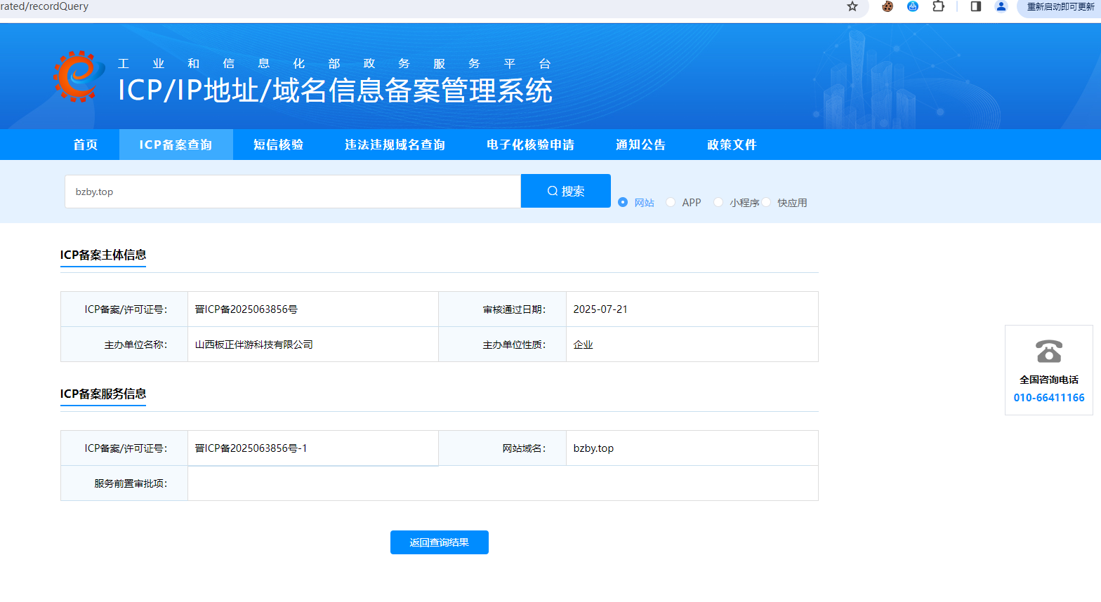 我们的域名内容(https://h5.bzby.top/pro),没有强制或者特别的要求,备案主体也是地方平台公司,域名备案号:晋ICP备2025063856号-1。