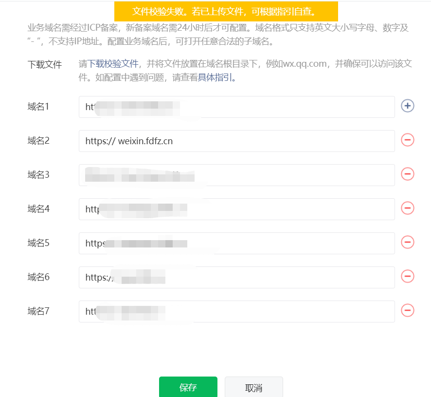 已经添加了很多个域名了,其他域名都是ok的, 也尝试过把其他的域名全部删除,只保留这个域名,一直失败,是否和二级域名:weixin相关?