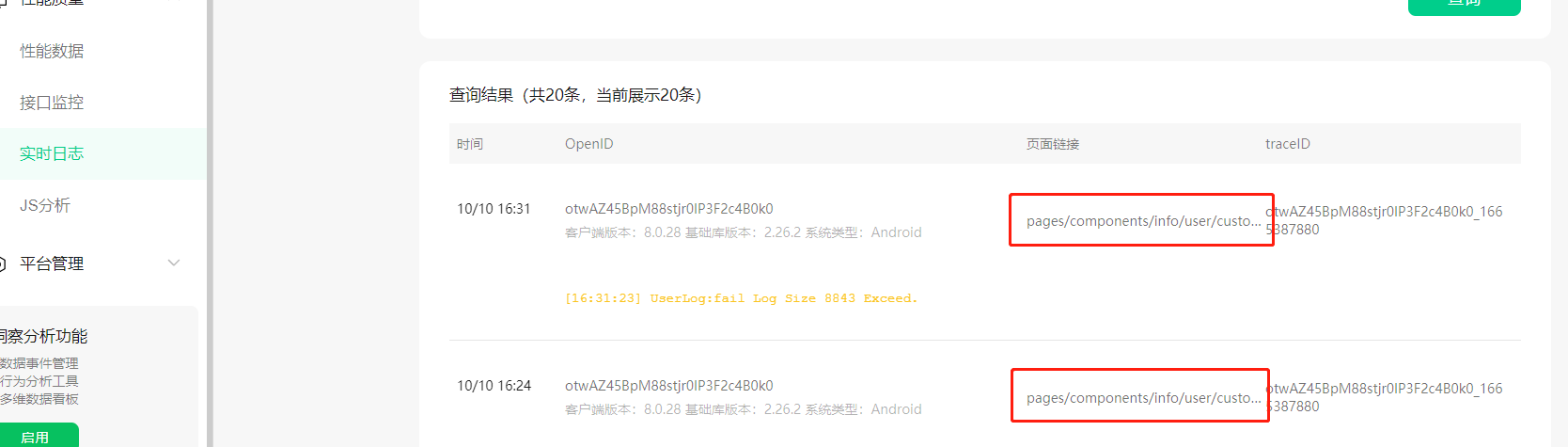 新版we分析实时日志页面链接长的时候显示不全,不利于分析哪个页面报错.