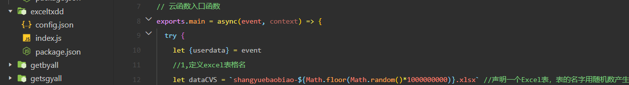 上面这个是已经做好的一个导出的EXCEL云函数,想要再导出另一个数据表,