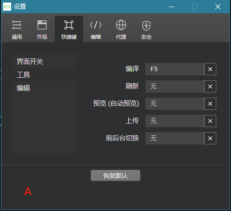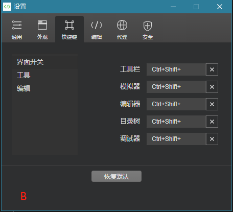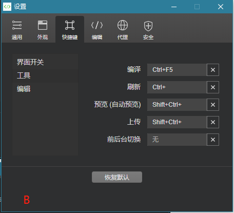 当把开发工具的快捷键设置好以后,再打开一个新的开发工具,原本设置的快捷键就都没了,在新打开工具中重新设置后,原本的工具的设置也就变了。