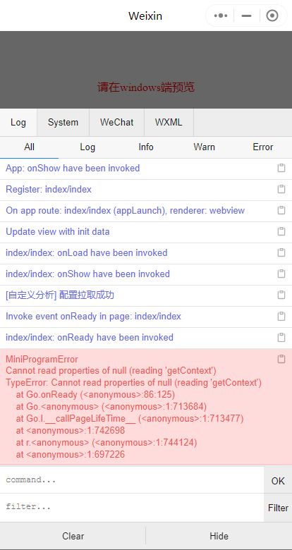 我也遇到了这种问题,真机测试选择pc端,没有报错,不是真机测试,就用不了