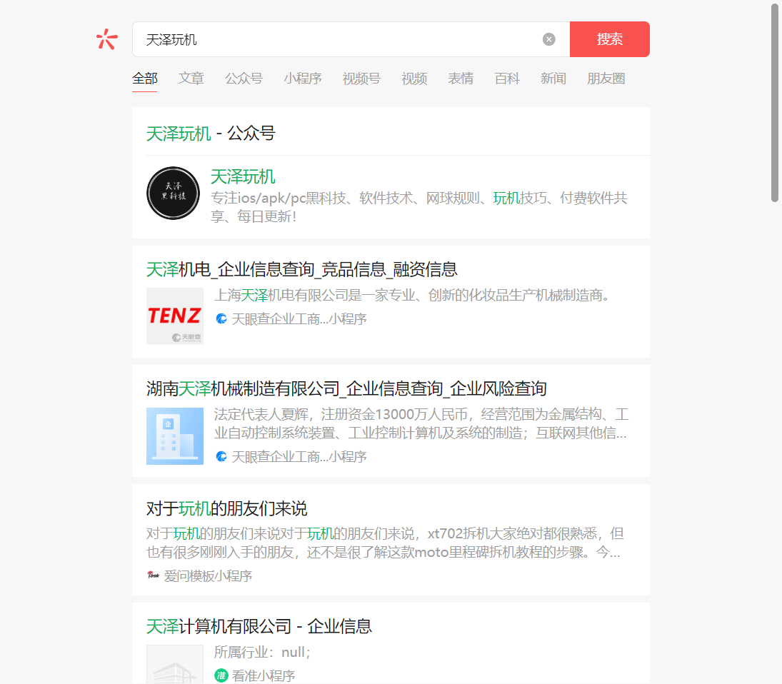 问题描述:微信搜索栏,搜“天泽玩机”搜不到公众号,公众号内的所有文章也都搜不到