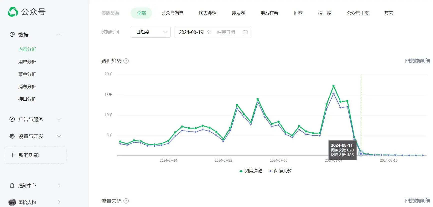公众号流量从8月11日全掉了怎么回事啊 ?每天更新原创的,之前2个月都是每天有推荐流量几千,现在几乎为0。流量从几千掉了10多了。一直更新高质量原创内容,怎么回事?麻烦处理下 啊。