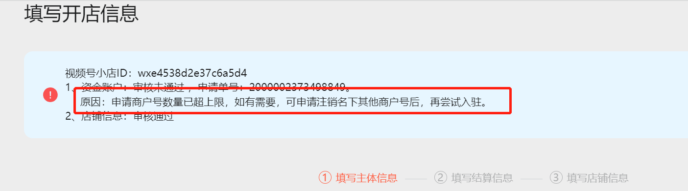 申请商户号数量已超上限,如有需要,可申请注销名下其他商户号后,再尝试入驻