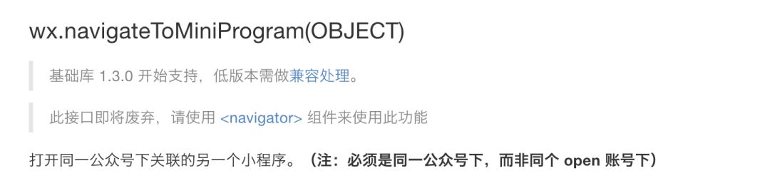 如果说低于2.0.7也兼容,那 navigator 跳转小程序的最低兼容版本到底是多少,请官方人员及时更新文档,并标注出来。