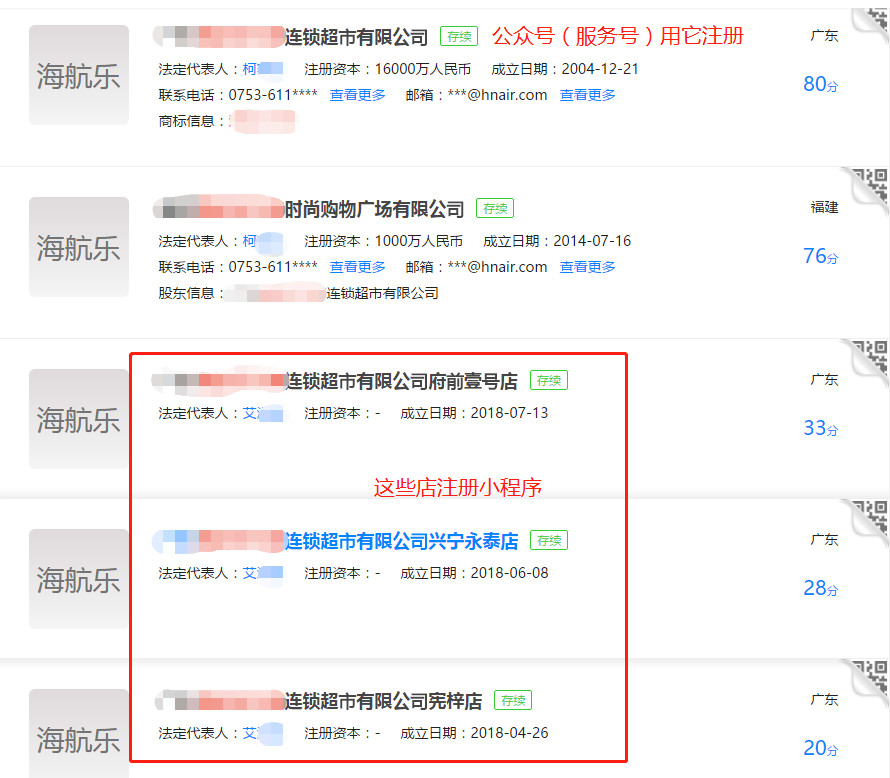 小程序,还没注册,因为多家店铺,同一法人B,跟公众号A法人 不一样,虽然法人不一样,但是是同一个公司来的。