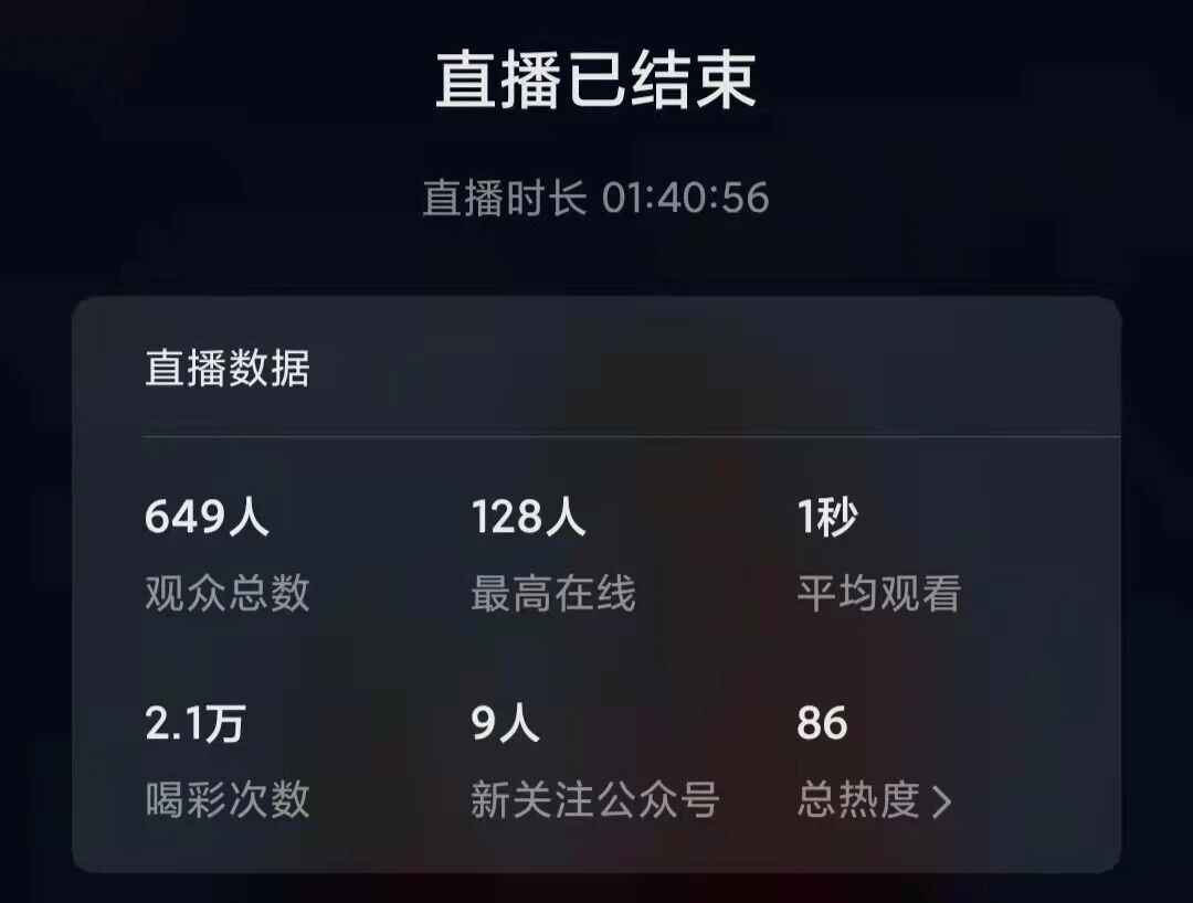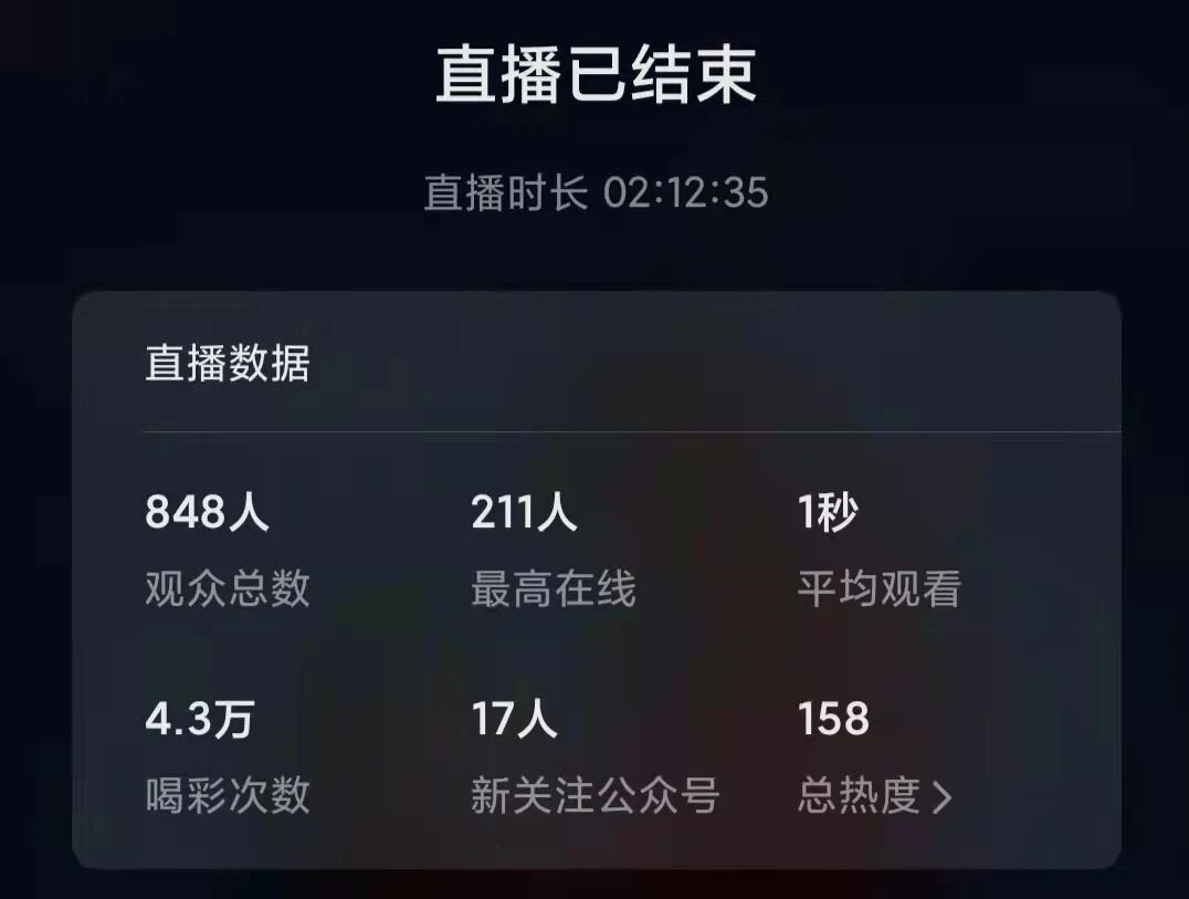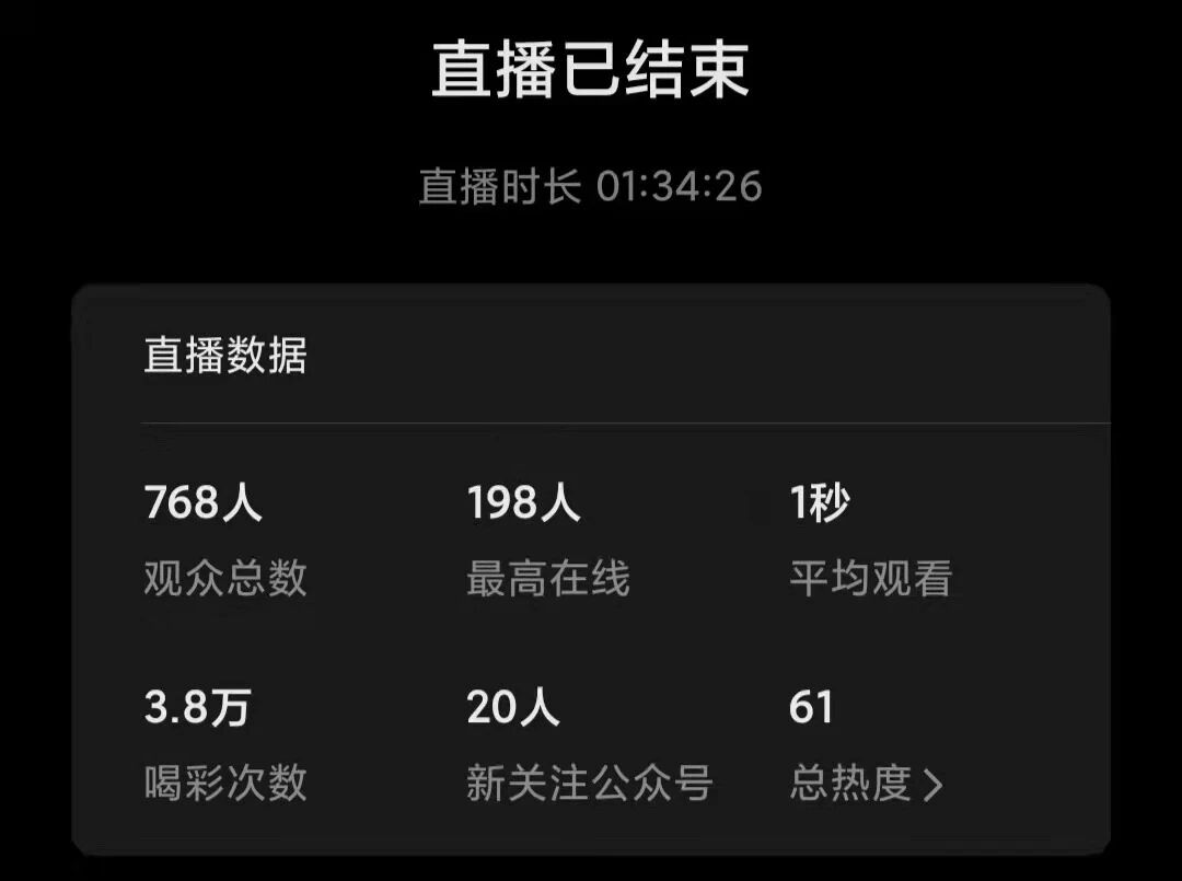 最近连续直播4场,在直播的过程中明显感觉持续在线人数都达百人左右,并且持续时间几乎自始至终,所以感觉平均观看1秒是不是平台出现BUG了?