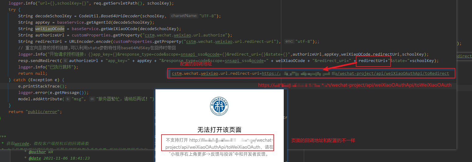 我这边也是同样的问题“无法打开网页”,但是我根据系统输出来的日志,把链接复制到微信里面能打开,但是通过页面操作打不开。