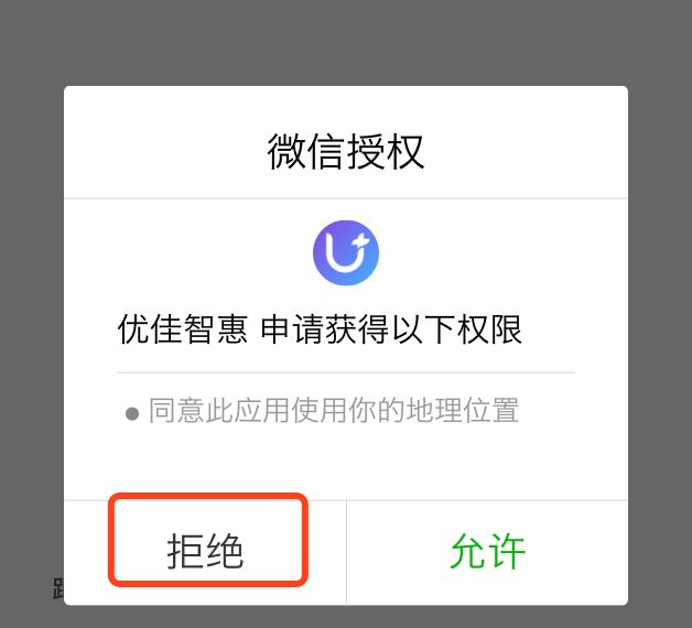 我想要的是点拒绝时的事件,如果拒绝了就给提示
