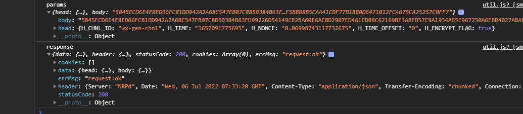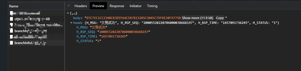 可以看到能打印返回报文但是报文不能折叠开,调试区network 是没有任何信息返回的,这就和前面的调试去打印矛盾,
