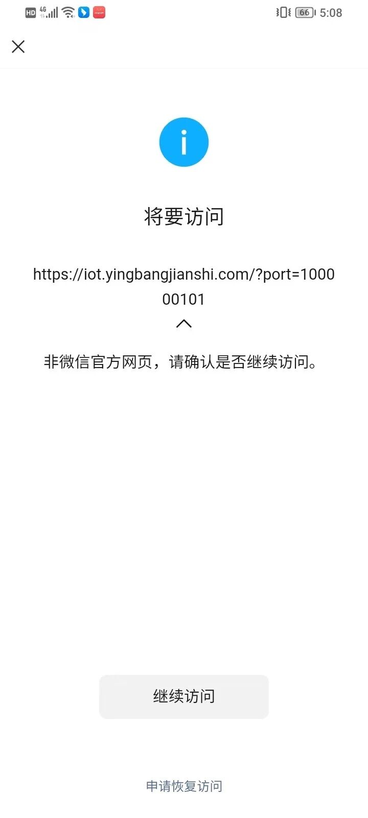 微信扫码不能跳转小程序,提示“非微信官方网页,请确认是否继续访问”。不能跳转?域名状态也是正常的,怎么处理恢复?