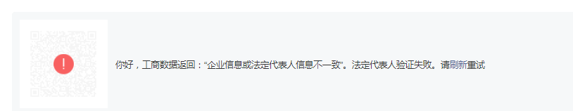 客户的微信公众号申请认证,显示工商数据返回,无法通过认证