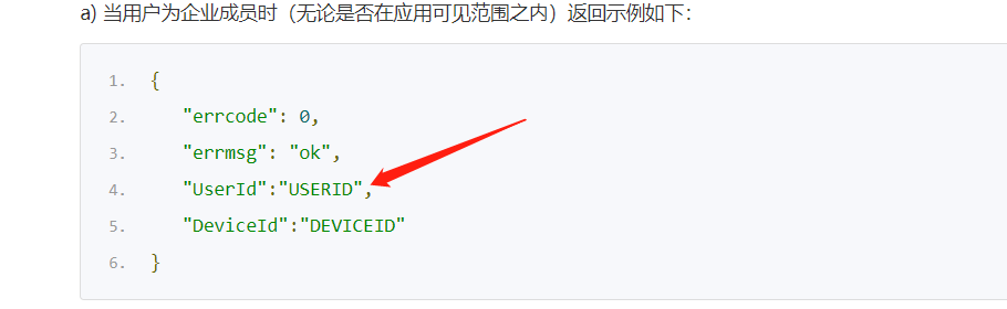 按照企业微信文档去获取用户的userId,返回来的却没有userId。反而是OpendId,哪里有问题呢,下图是我获取到的