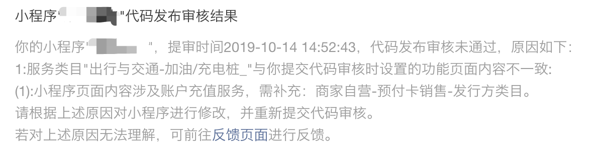 你好,经核实,贵方小程序最新提审版本暂不需补充商家自营-预付卡销售-发行方类目,请重新提交代码审核