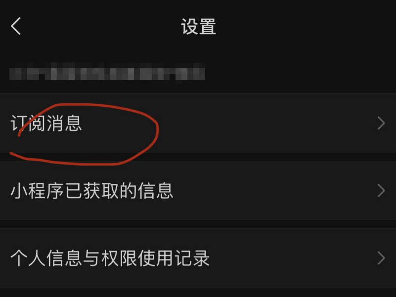 wx.getSetting({ withSubscriptions: true, success (res) { console.log(res.authSetting) // res.authSetting = { // "scope.userInfo": true, // "scope.userLocation": true // } console.log(res.subscriptionsSetting) // res.subscriptionsSetting = { // mainSwitch: true, // 订阅消息总开关 // itemSettings: { // 每一项开关 // SYS_MSG_TYPE_INTERACTIVE: 'accept', // 小游戏系统订阅消息 // SYS_MSG_TYPE_RANK: 'accept' // zun-LzcQyW-edafCVvzPkK4de2Rllr1fFpw2A_x0oXE: 'reject', // 普通一次性订阅消息 // ke_OZC_66gZxALLcsuI7ilCJSP2OJ2vWo2ooUPpkWrw: 'ban', // } // } } })
