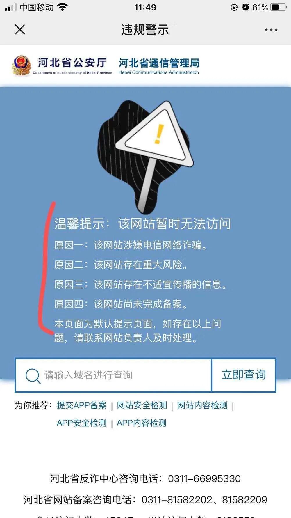 是不是你们公司的域名备案没了?去查查工信部你们公司的域名ICP备案。