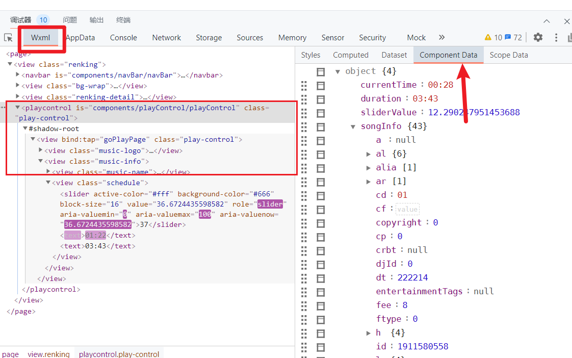 对的,组件内数据的查看,确实是个蛋疼的事儿,现在只能靠console来打点查看