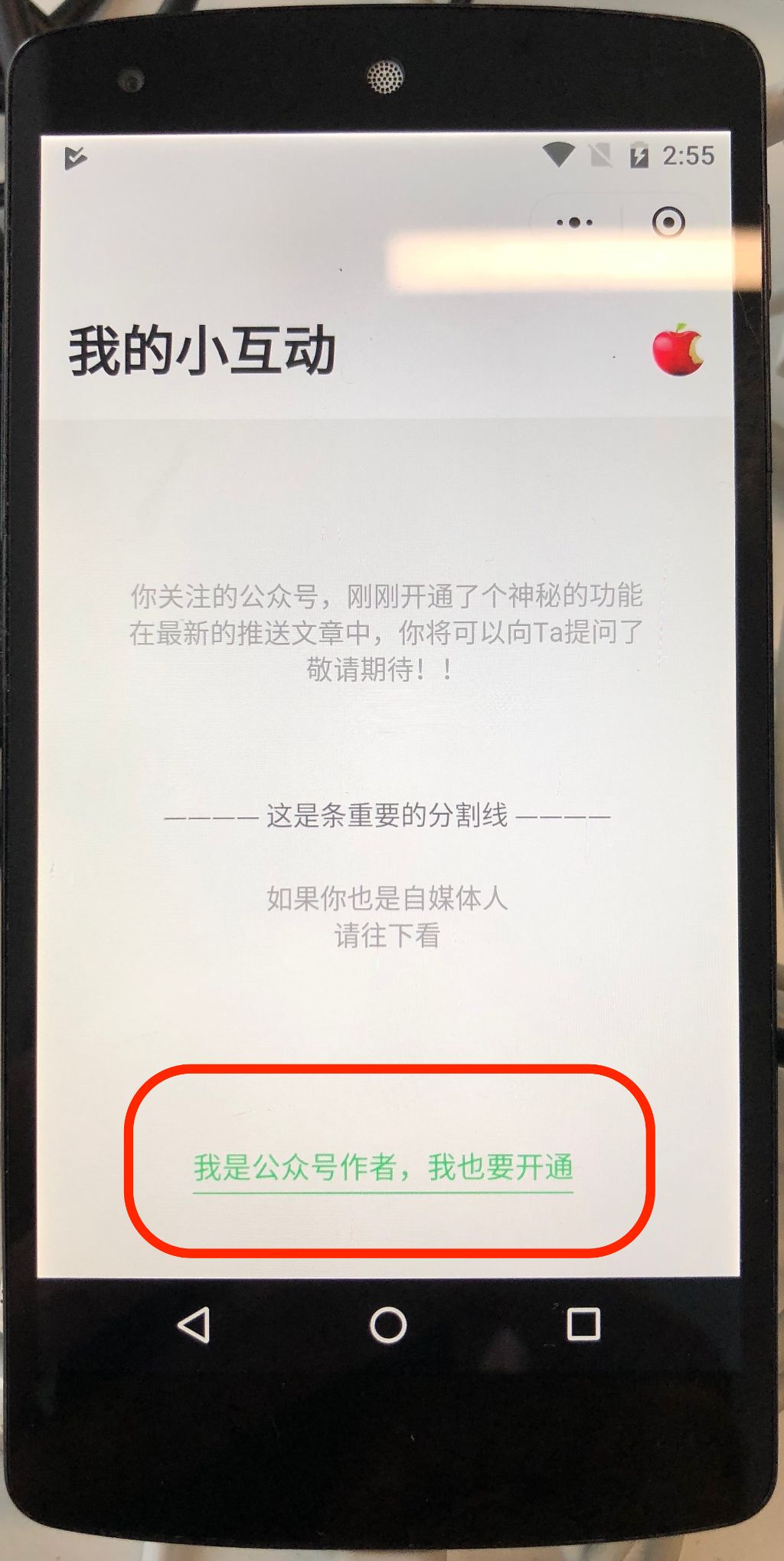 修改了“我是公众号作者,我也要开通”这个可点击的文字的可见性的情况,使得该链接总是可见后。再次提交审核,通过了。