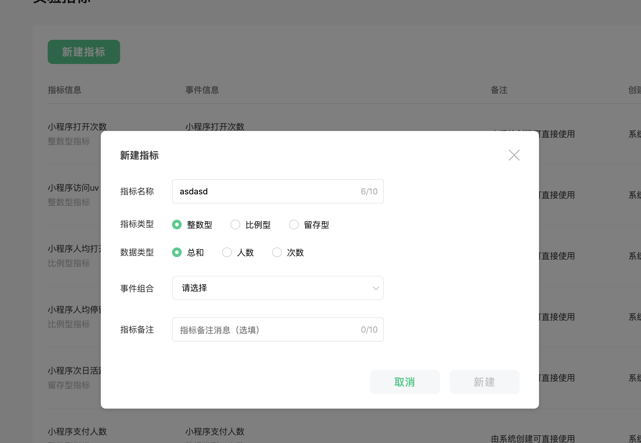 需要选择事件和属性后才可完成新建,这里的事件和事件管理中的一样,可以在那边完成事件上报