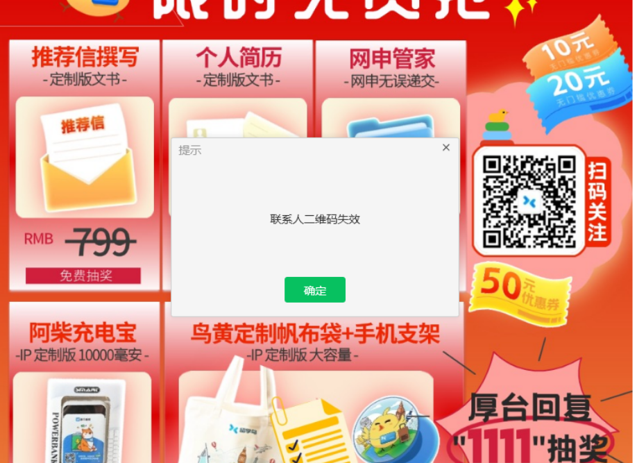 遇到同样的问题,公众号二维码 机扫没问题,发送图片到微信,在电脑端微信打开图片 识别二维码 提示 “联系人二维码失效”。