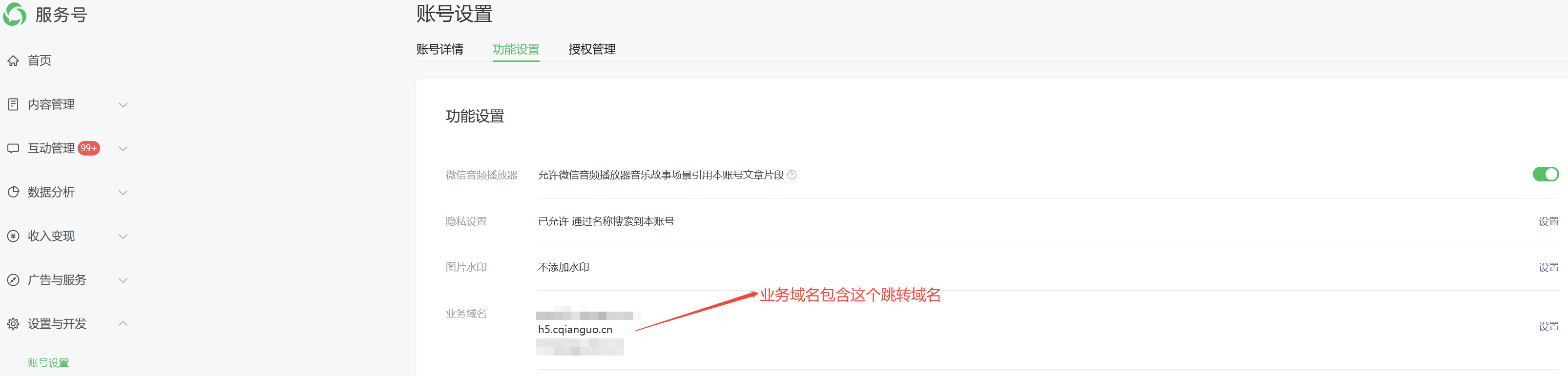 请在微信中配置业务域名。
