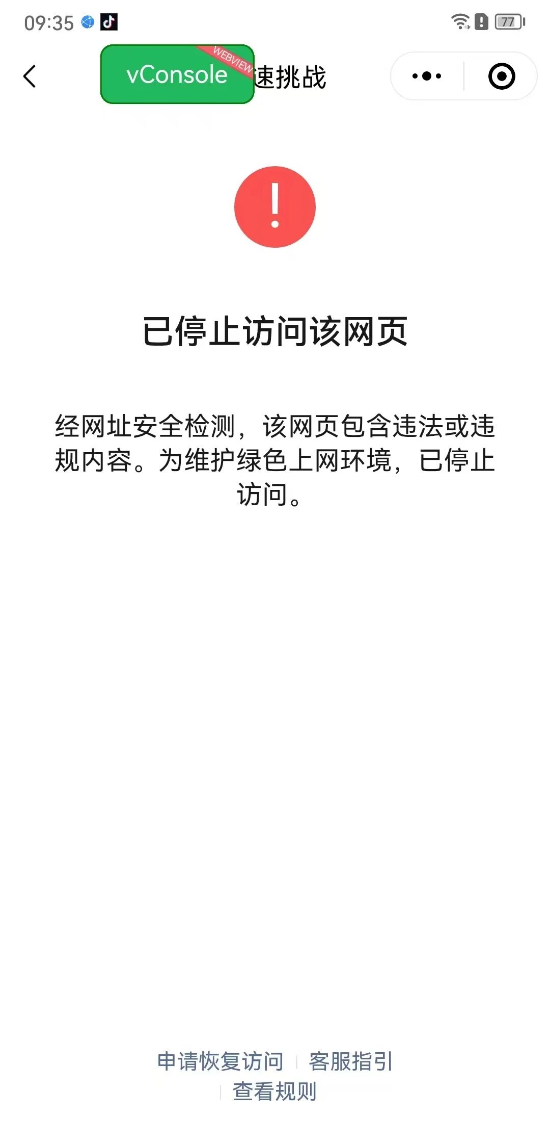 打开西安市工会竞技馆小程序,系统提示“已停止访问该网页”,请问是什么原因?