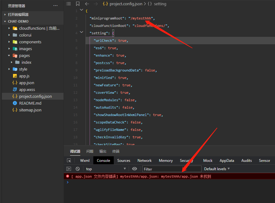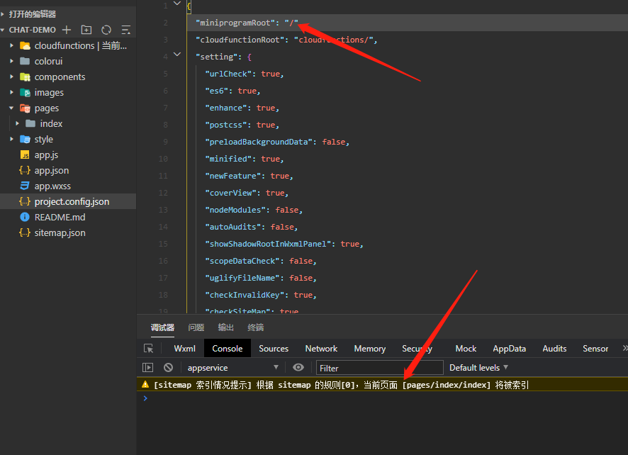 如图,我的根目录是/ (即我的app.json放在了最外面的文件夹中);