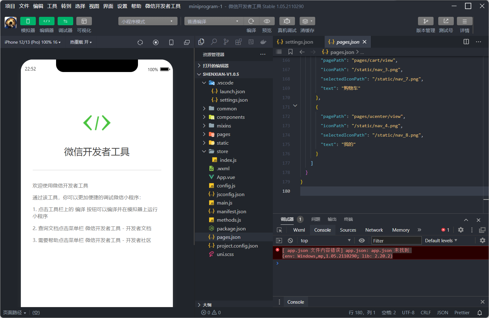[ app.json 文件内容错误] app.json: app.json 未找到(env: Windows,mp,1.05.2110290; lib: 2.20.2)