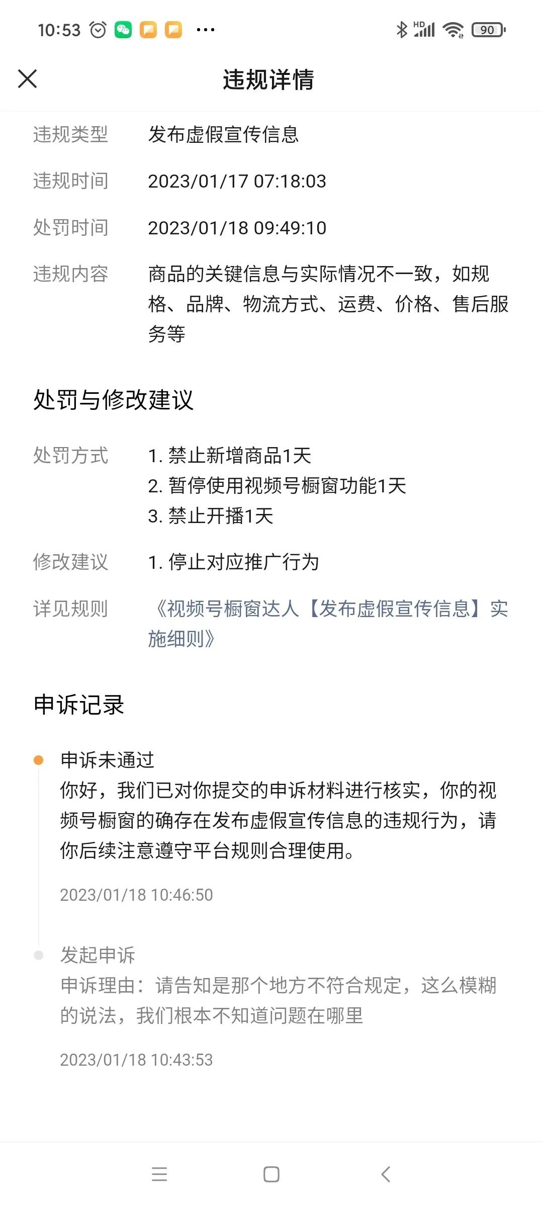 违规内容 商品的关键信息与实际情况不一致,如规格、品牌、物流方式、运费、价格、售后服务等,直播介绍的时候很小心,规格、品牌、物流方式、运费、价格、售后服务也都没问题,五天了,就昨天没被封禁直播,有知道什么情况的吗