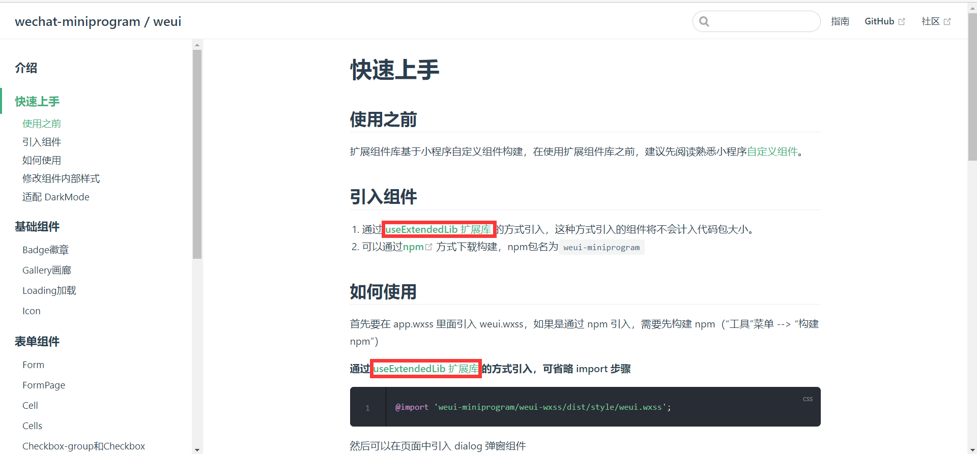 在浏览weui组件库的文档时(URL:https://wechat-miniprogram.github.io/weui/docs/quickstart.html#%E4%BD%BF%E7%94%A8%E4%B9%8B%E5%89%8D),点击下面这个链接会404