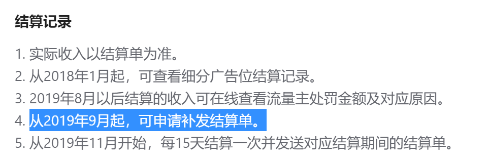 因为结算信息是上个月底填写的,9月份和10月份都没有收到过结算信息。至今只收到了 2019-11-16~2019-11-30 这个时间段的结算,如何申请之前的结算单?