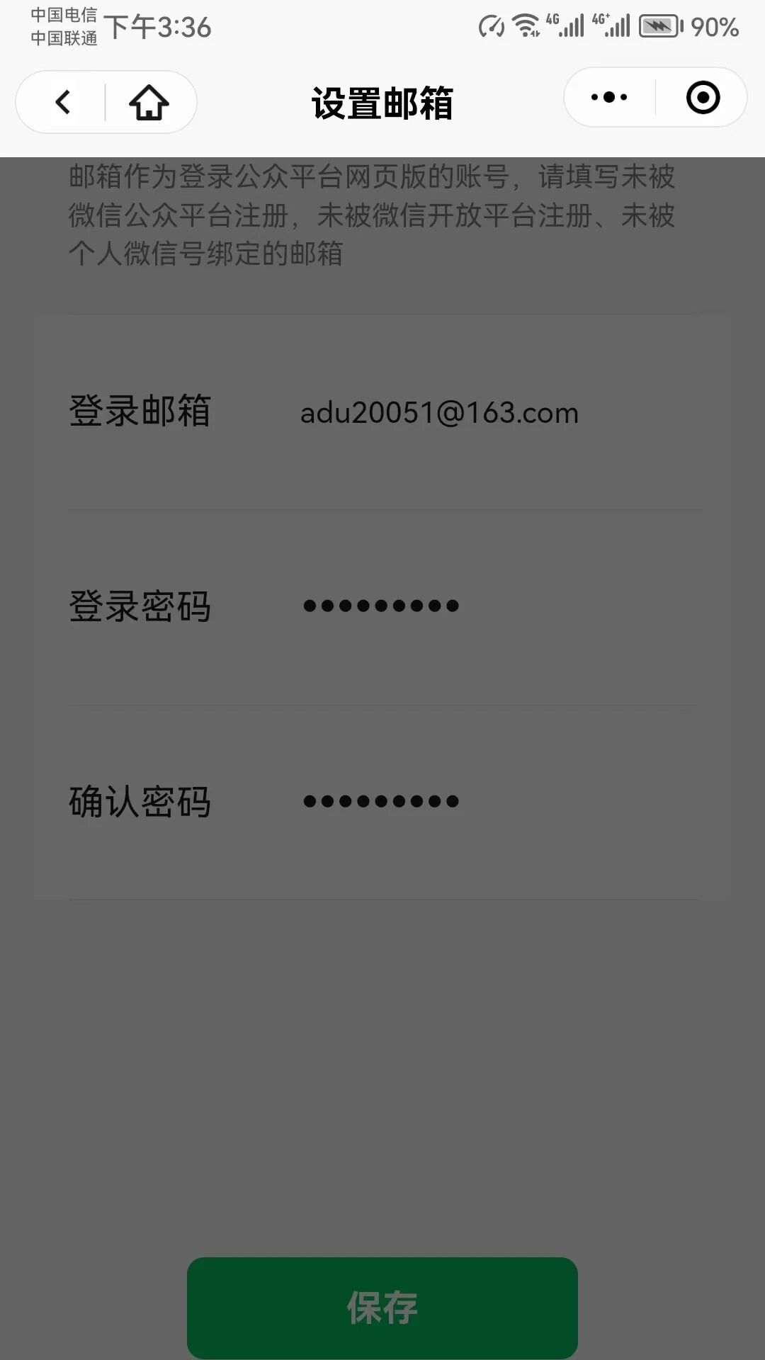 客户通过开放平台注册的小程序在手机微信端和电脑微信端通过小程序助手进行邮箱绑定时,点击保存页面都是一样的变为灰色无法进行下一步操作。
