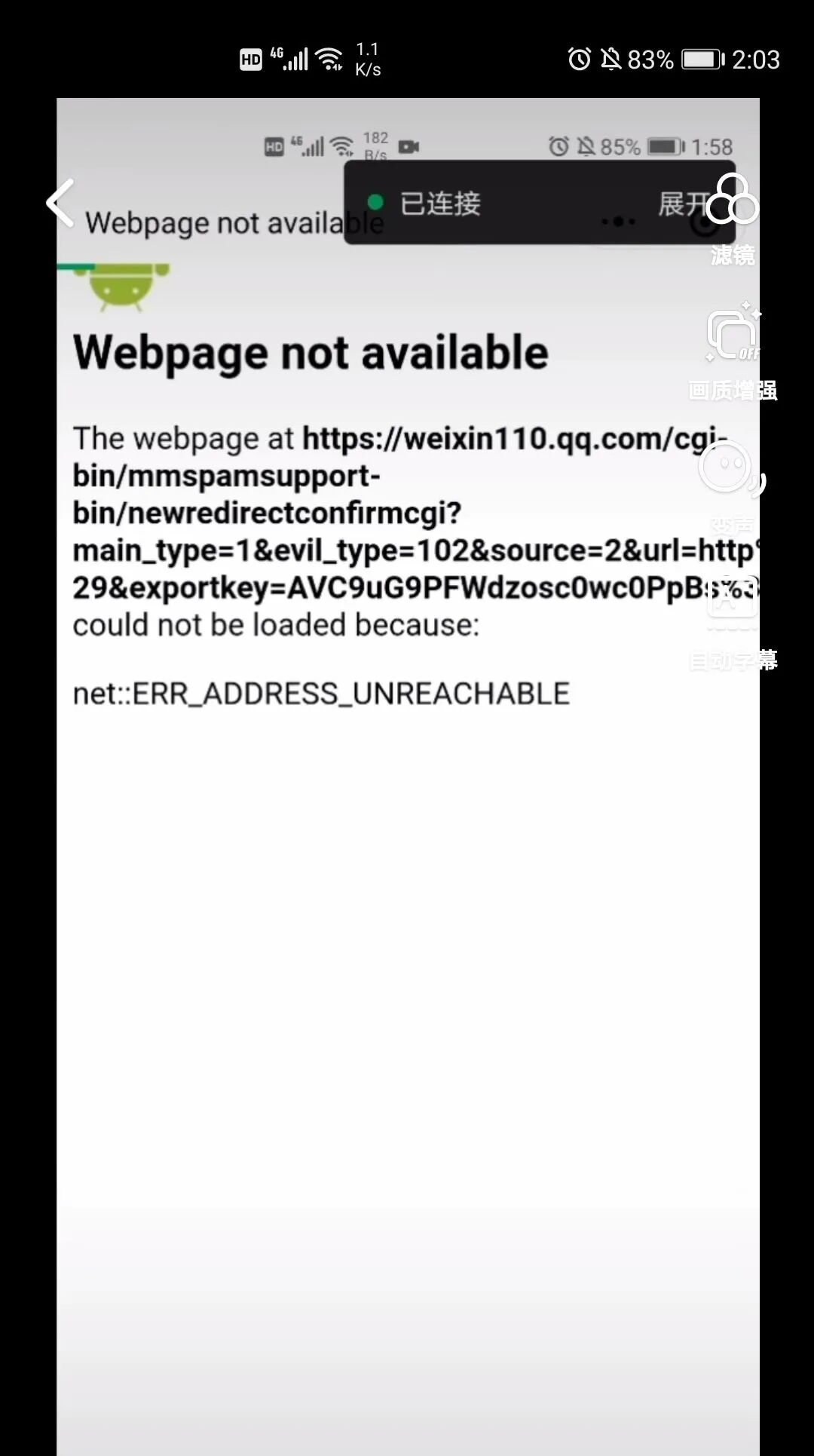 华为p40和荣耀30,连接的是公司内网,真机调试访问我们的小程序时,提示webpage not available。