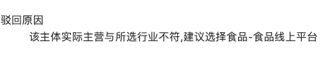 你好,该主体实际主营与所选行业不符,建议选择食品-食品线上平台,请客户按照审核建议选择对应行业再提交。