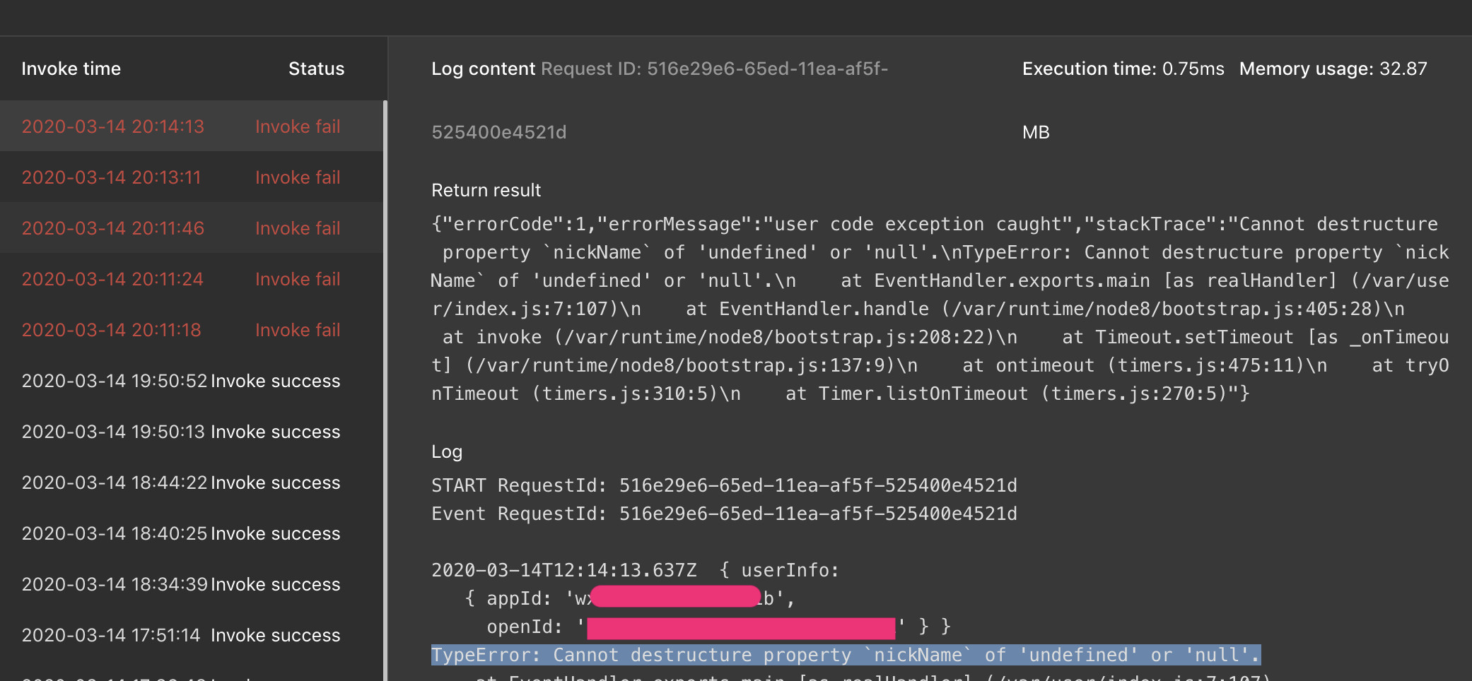 const {nickName, openId, gender, city, province, language, country, avatarUrl,unionId} = event.userInfo.data